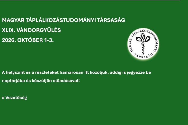 Örömmel értesítjük, hogy a Magyar Táplálkozástudományi Társaság idei Vándorgyűlését Kecskeméten rendezi meg.